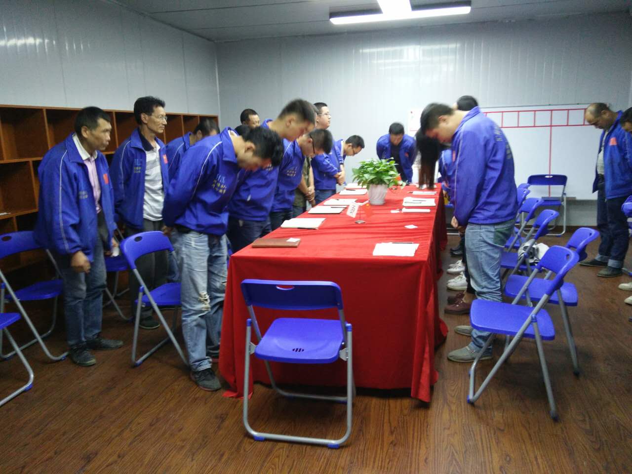 在會議召開前夕,匯利興人集體對企業(yè)三道(人道、孝道、商道)進行了三鞠躬,在鞠躬的同時每個匯利興人面孔都是端重而嚴(yán)肅得。(因為這是匯利興人對自己對家人對客戶對企業(yè)一種負責(zé)的態(tài)度)。
