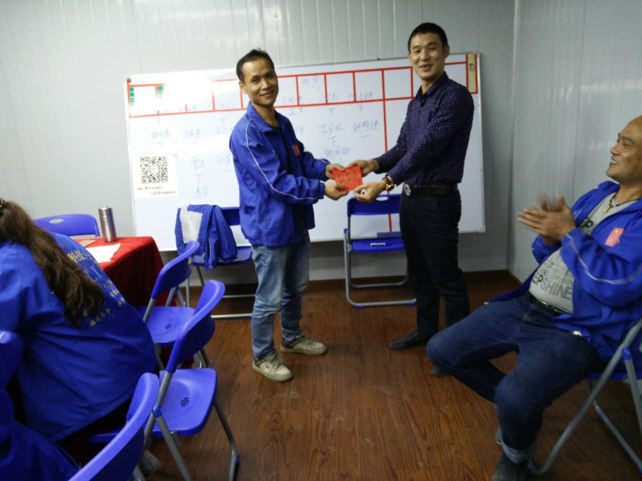 胡總經(jīng)理(右圖)為每月度最佳奉獻獎榮獲者王成建(左圖)頒發(fā)獎金,同時祝賀匯利興家人王成建榮獲雙星(八月、九月)進而也感謝無私奉獻的匯利興家人,感謝他們的辛勤付出,有著每一位匯利興家人的無私奉獻,相信匯利興定會越走越遠。