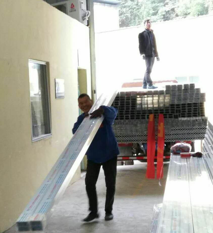 匯利興戰(zhàn)士面帶笑容搬卸鋁型材,匯利興獨(dú)有的匠心精神