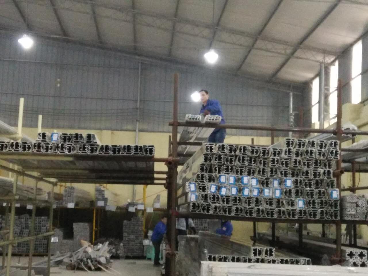 看,這一大堆鋁型材還等待著匯利興戰(zhàn)士們搬卸,在此感謝他們的付出,你們辛苦了!?。?br /> 一邊搬卸著鋁型材,一邊還要整齊擺放在庫位上。匯利興做事就是這么perfect?。?!