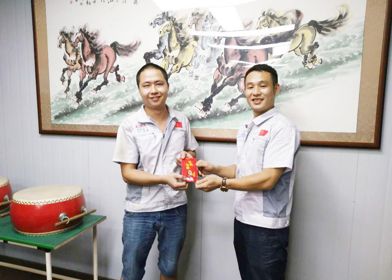 會(huì)上,首先大家對(duì)新同事的加入表示熱烈的歡迎,其次由張副總為新同事贈(zèng)送匯利興紀(jì)念小禮物;觀看(你想過(guò)放棄嗎?)小視頻,面對(duì)一切永不放棄、永拼到底的加油精神!然后各部門做簡(jiǎn)短自我介紹,不斷認(rèn)識(shí)自己、了解自己了解他人創(chuàng)造一切的不可能,最后會(huì)議以每月度之星及月度部門的選舉而落下帷幕。 對(duì)企業(yè)三道“人道、孝道、商道”行三鞠躬 敲擊士鼓,士氣比武器更重要 俗話說(shuō):一份耕耘一份收獲,不付出就不會(huì)有收獲,兩者始終成正比。雖然在這條耕耘的道路上也許會(huì)布滿荊棘并揮汗如雨,也許會(huì)經(jīng)風(fēng)雨洗禮且精疲力盡但這一切都是人生的寶貴財(cái)富及成功的支點(diǎn),雖然過(guò)程是苦澀的但結(jié)果總是是甜蜜的。然此次最佳部門獎(jiǎng)為“物控部”,月度之星“徐財(cái)華”戰(zhàn)士,在此感謝他們的付出與努力,相信匯利興在大家的一起陪伴及努力下夢(mèng)想定會(huì)離我們的越來(lái)越近,加油! 胡總經(jīng)理(圖右)與月度部門“物控部”主管徐財(cái)華(圖左)合影 胡總經(jīng)理(圖右)與月度部門“月度之星”徐財(cái)華(圖左)合影