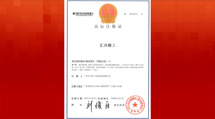 陽春三月,萬物復(fù)蘇。廣東匯興精工智造股份有限公司的喜訊就如鮮花綻放、嫩芽出頭,一個(gè)接一個(gè),讓人應(yīng)接不暇。3月13日,一份商標(biāo)注冊(cè)證書飄然而至。這為“匯興精工”的商標(biāo)注冊(cè)證書已經(jīng)是中華人民共和國(guó)國(guó)家工商行政管理總局商標(biāo)局為匯興智造簽發(fā)的第9份商標(biāo)注冊(cè)證書。 匯興智造立志成為中國(guó)領(lǐng)先的整廠自動(dòng)化系統(tǒng)解決方案提供商,一直不忘初心,不斷優(yōu)化產(chǎn)品質(zhì)量,堅(jiān)持研發(fā)攻克新技術(shù),打造開發(fā)新產(chǎn)品,加速轉(zhuǎn)化新成果。在做大做強(qiáng)的過程中,強(qiáng)烈地意識(shí)到知識(shí)產(chǎn)權(quán)和品牌建立的重要性,所以,成立了知識(shí)產(chǎn)權(quán)部門,投入大量人力、財(cái)力來保護(hù)自主創(chuàng)新、知識(shí)產(chǎn)權(quán)和品牌構(gòu)建。 商標(biāo)注冊(cè),為匯興智造樹立了品牌、建立了口碑。在每一個(gè)匯興人心中都有一個(gè)愿望,那就是打造一個(gè)“百年老店”?!皠?chuàng)于手 精于工 智于器 匠于心 品于行”是匯興智造奉行的工匠精神,匯興人在匯興工匠精神的影響下,勤修內(nèi)功、精益求精地培育著匯興人心中的“百年老店”。 “十年磨一劍”,匯興智造以提升品質(zhì)為根本,下大力氣做真正的好產(chǎn)品,由產(chǎn)品制造走向了產(chǎn)品智造,將向精品制造進(jìn)發(fā),提高品牌的含金量,做出 “匯興百年老店”的金字招牌。(轉(zhuǎn)載匯興智造http://www.huixinggroup.com)