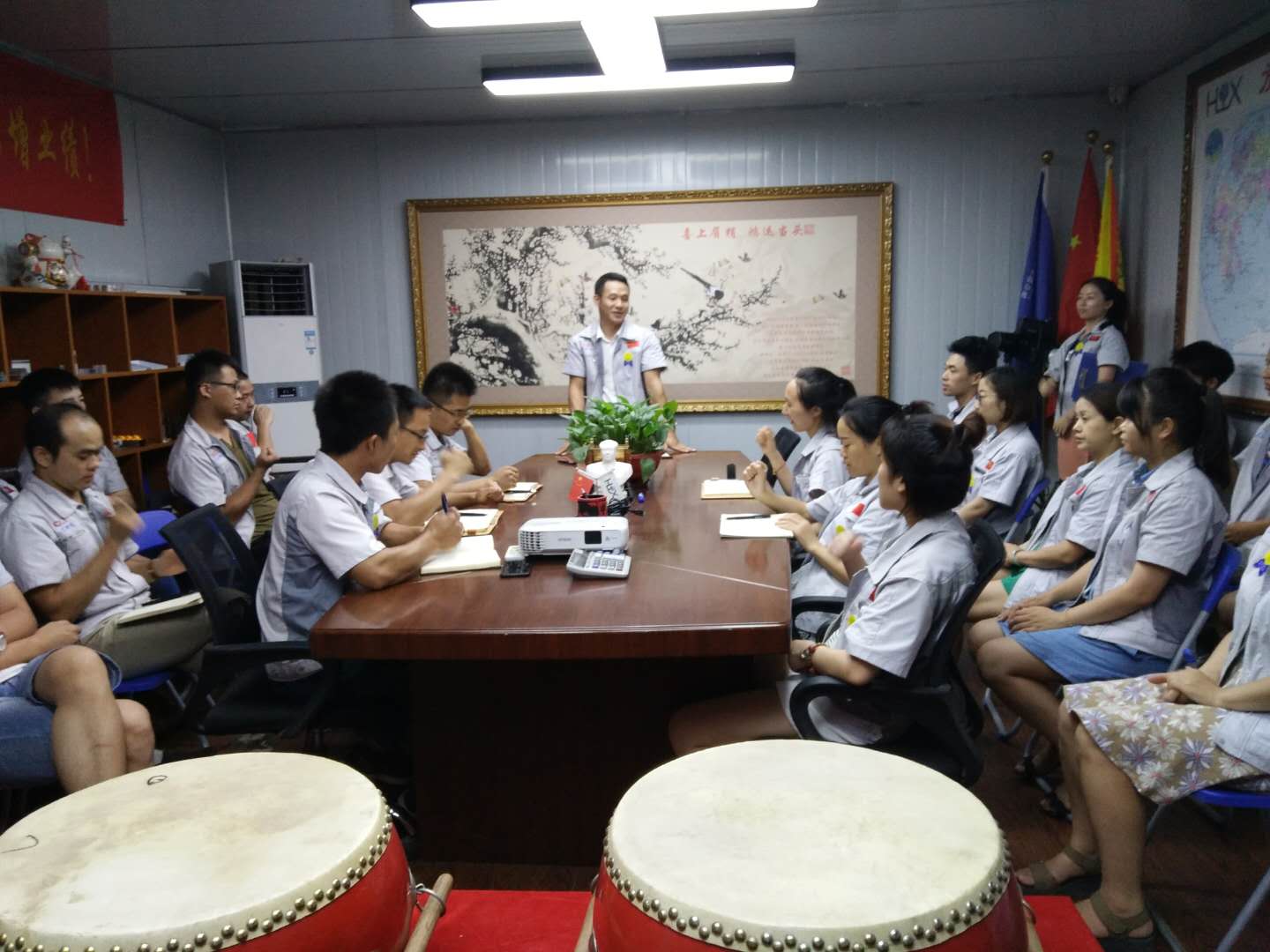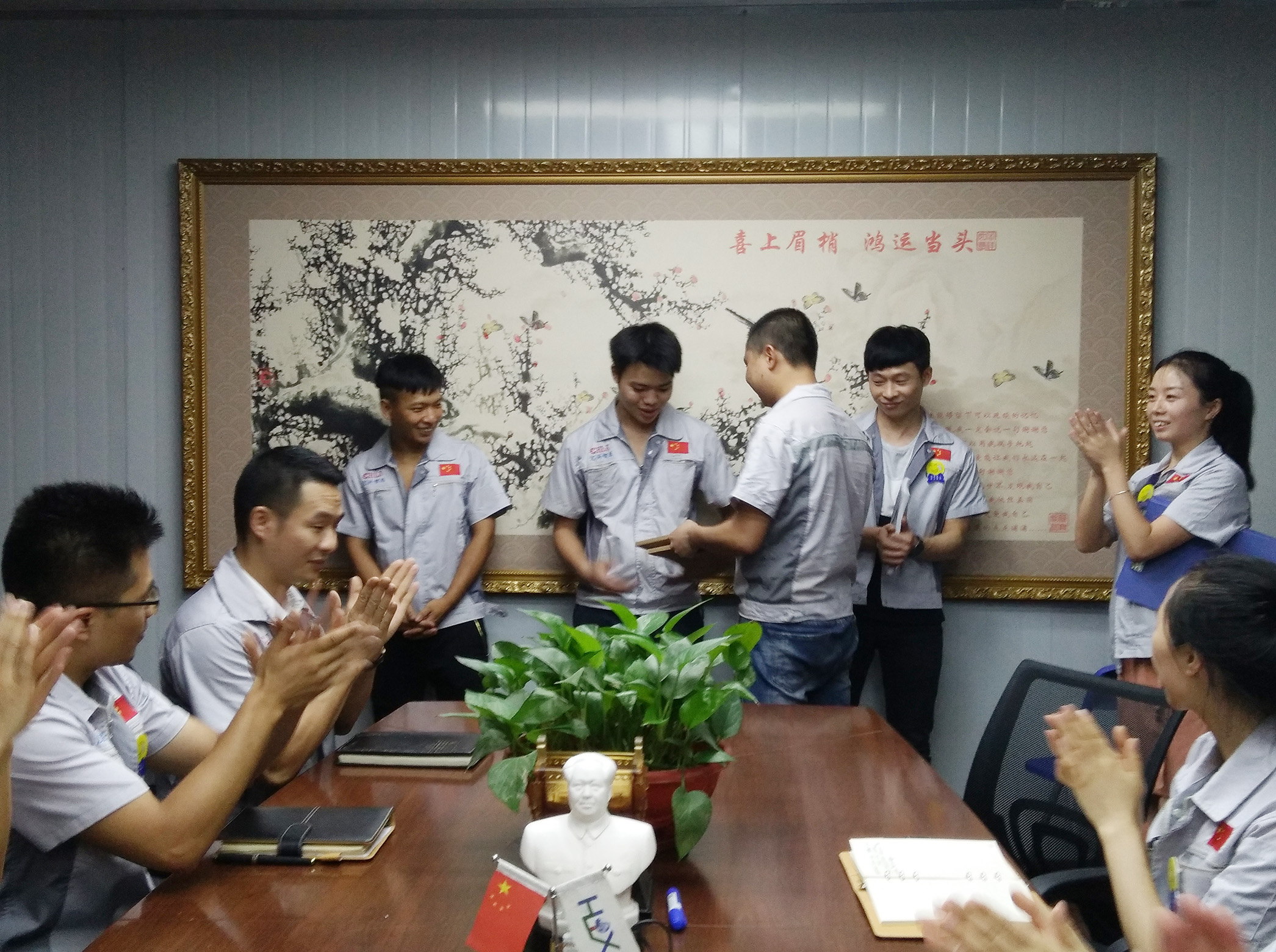 7月19日,匯利興(重慶)公司全體人員在匯利興學(xué)校召開6月份月度會議。會議持續(xù)近兩小時,現(xiàn)場氣氛十分熱烈,由行政部主管陳香草主持。 劍風(fēng)所指,所向披靡。會議開始前,主持人陳香草帶領(lǐng)大家移步匯興文化廠地,整肅衣冠 ,對匯興人倍加推崇的“三道文化”(孝道、商道、人道)鄭重地鞠躬,莊嚴(yán)宣誓企業(yè)精神“用情做人、用心做事”,團(tuán)隊(duì)精神“忠誠團(tuán)結(jié)、勤奮進(jìn)取”,隨后由匯興兩位女精英擊士氣鼓,凝人心、鼓干勁;緊接著胡偉路總經(jīng)理授予采購部凝聚亮劍精神的一把寶刀,亮出氣勢、匯聚力量,砍前行荊棘、勇踏匯興征途。 圖一示意圖 圖二采購部家人手握寶刀合影圖 隨著家人們熱情高漲,會議開啟第二議程。全體人員隨主持人巡視倉儲A區(qū)長材區(qū)與倉儲B區(qū)配件區(qū)庫存及加工區(qū)面貌,集思廣益、廣納諫言并相互監(jiān)督面貌的保持。 圖三示意圖 作為掛牌企業(yè)(股票代碼:839258),匯利興長期以來,一直重視新鮮血液的注入和人才的引進(jìn),截止今日匯利興從之前的幾個人變成現(xiàn)在的幾十人,團(tuán)隊(duì)力量逐步增強(qiáng),為行業(yè)貢獻(xiàn)力量愈發(fā)強(qiáng)大。會議開啟第三議程-新員工入職歡迎儀式,物控部徐主管為新員工頒發(fā)紀(jì)念品。 徐主管為新員工頒發(fā)紀(jì)念品示意圖 為了增強(qiáng)企業(yè)凝聚力,表彰先進(jìn),樹立楷模,激勵員工奮發(fā)向上,形成人人爭當(dāng)先進(jìn),人人為公司發(fā)展做貢獻(xiàn)的行為,實(shí)現(xiàn)持續(xù)有效的激勵機(jī)制和企業(yè)良好傳統(tǒng),會議發(fā)起第四個議程——表彰儀式,對6月份在工作中表現(xiàn)突出的優(yōu)秀團(tuán)隊(duì)和個人給予表彰。 優(yōu)秀團(tuán)隊(duì)工程部家人獲得者與張副總合影示意圖 月度之星周榮、李如洪家人與張副總合影示意圖 隨后部門負(fù)責(zé)人(徐主管、蒲經(jīng)理、熊經(jīng)理)作2018年度工作總結(jié),總結(jié)上半年工作及部門的得與失,有則改之無則加勉。談到各部門間配合密度,工作作風(fēng)及個人精神面貌等相關(guān)事宜。并隨即提到匯利興獨(dú)有的企業(yè)文化“家人”,匯興每一位同事都是彼此的家人,并肩作戰(zhàn)的家人,共筑匯興夢的家人。 徐主管、蒲經(jīng)理、熊經(jīng)理作2018年度工作總結(jié)示意圖 會議最后,胡偉路總經(jīng)理作會議總結(jié)及未來展望。會上,胡偉路總經(jīng)理首先對三位負(fù)責(zé)人所作的發(fā)言,提出了新的總結(jié)及建議;其次,針對目前所存在的短板作出了相應(yīng)的指示并勉勵匯興人要學(xué)會總結(jié)、學(xué)會反思,這不僅是一種智慧,更是下次進(jìn)步的開端。并表示,匯利興團(tuán)隊(duì)至始至終都是最棒的團(tuán)隊(duì),永不言敗的團(tuán)隊(duì);因此要堅(jiān)信自己、相信自己,穩(wěn)扎每一步伐,向前沖! 圖四示意圖 最后,全體匯興人起立,整肅衣冠,擊士氣鼓并齊喊“為夢想沖刺,我是匯利興的一名戰(zhàn)士”,整個會場環(huán)繞著吶喊聲,現(xiàn)場激情澎湃、士氣高昂、振奮人心。