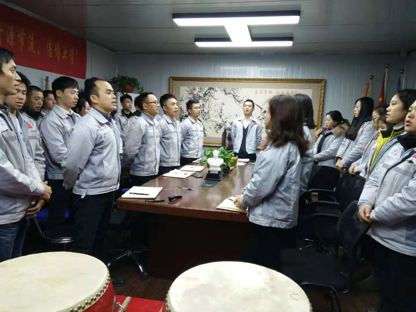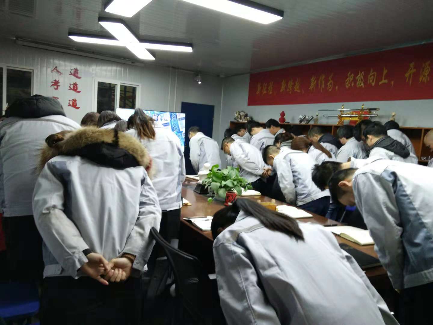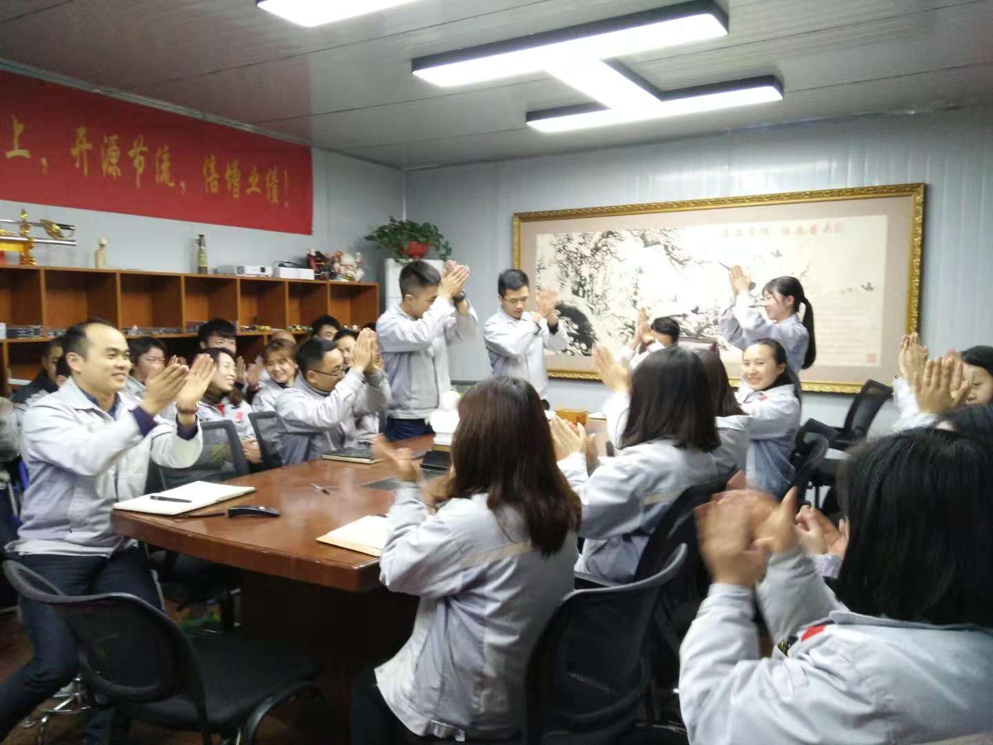 企業(yè)三道“孝道、商道、人道”行三鞠躬 擊士氣鼓,士氣比武器更重要 會議第一項議程:嘉獎環(huán)節(jié)-優(yōu)秀部門,優(yōu)秀員工評選。本月度優(yōu)秀部門“物控部”,月度之星“熊學斌”,他們用行動告訴我們什么是阿甘精神,什么是責任,在此祝賀他們同時也感謝他們的辛勤付出,感謝大家的付出,相信在僅有的2018年里,我們定會創(chuàng)造奇跡。 月度之星和優(yōu)秀部門獲得者合影圖 第二項議程:由我們的行政主管陳香草宣導倡議書,勉勵大家:“付出不一定有收獲,但不付出是一定沒有收獲”,其次感謝大家在工作崗位上的無私奉獻,號召大家在2018的短短18天里面繼續(xù)努力,勁往一處使,心往一起靠,全力以赴,不忘初心、砥礪前行。同時宣導公司年會籌備事宜,并倡導大家踴躍參與,辦一個熱熱鬧鬧與眾不同的年會。 會議圖景一 第三項議程:胡偉路總經(jīng)理作會議總結(jié)及未來展望。會上,胡偉路總經(jīng)理提到“三心二力”,對自己的信心,跟進客戶的耐心,拿下訂單的決心,對規(guī)矩的執(zhí)行力,團隊協(xié)作的戰(zhàn)斗力;希望大家在最后的18天里以奉獻自身的力量,自身協(xié)作能力全力沖刺,完成好每一份訂單。在2018的最后一個月請各個部門主管做好總結(jié)與反思,用最大的力量助力公司,為我們的2018畫上一個完美的句號。 會議圖景二 最后,全體匯興人起立,整肅衣冠,眾志成城齊喊“為夢想沖刺,我是匯利興的一名忠誠戰(zhàn)士”,整個會場環(huán)繞著吶喊聲,現(xiàn)場激情澎湃、士氣高昂、振奮人心。