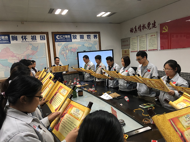 會(huì)議第四項(xiàng)議程:2019年公司品牌創(chuàng)新方案。緊緊立足“匯利興”品牌,開拓創(chuàng)新,打造匯興產(chǎn)品特色,做到人人皆知匯興品牌,人人稱贊匯興品牌。 會(huì)議第五項(xiàng)議程:2019年度目標(biāo)宣誓及執(zhí)行方案。會(huì)上,全體人員對(duì)2019年目標(biāo)做出承諾,宣讀誓言簽下軍令狀。因?yàn)橛谐兄Z,才有責(zé)任和擔(dān)當(dāng);因?yàn)橛袎?mèng)想,才有砥礪前行的信念。匯利興戰(zhàn)士們?cè)谇靶械牡缆飞吓G斬棘、開疆?dāng)U土,相信行業(yè)的掌聲始終屬于我們