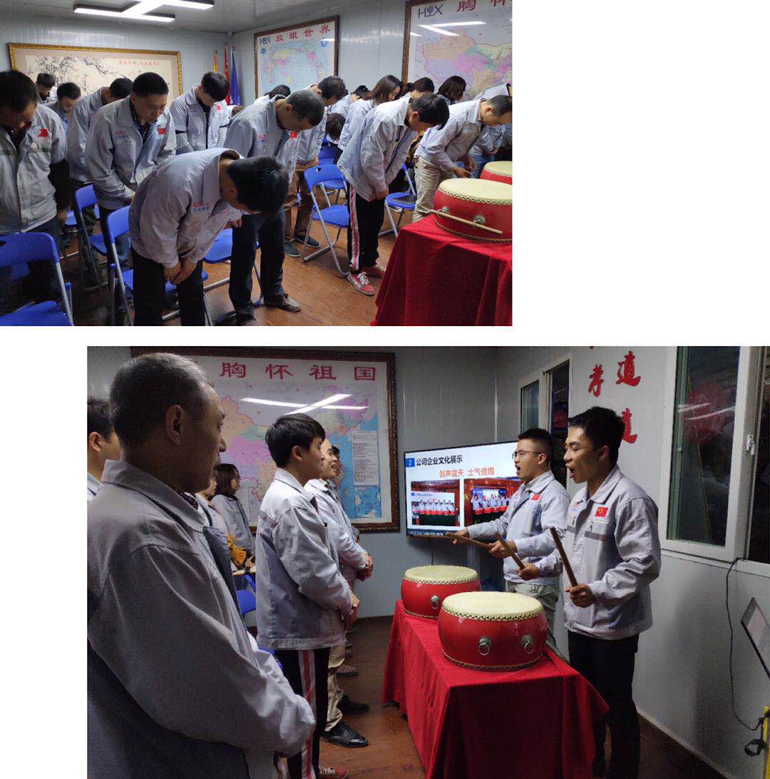 會議第二項議程,企業(yè)文化的展示。全體匯興人整肅衣冠對匯興人倍加推崇的“三道文化”(孝道、商道、人道)鄭重地鞠躬,莊嚴宣誓企業(yè)愿景:“成為全球領先的智能自動化產(chǎn)業(yè)鏈集成服務商”,企業(yè)使命:做受尊敬的好人,造受尊敬的產(chǎn)品,辦受尊敬的企業(yè),建受尊敬的平臺,企業(yè)精神“用情做人、用心做事”,團隊精神“忠誠團結、勤奮進取”,工匠精神:創(chuàng)于手、精于工、智于器、匠于心、品于行,行為準則:口中有德、目中有人、手中有技、心中有愛、行中有善,職業(yè)準則:對工作熱臉、對同事笑臉、對錯誤紅臉、對浪費黑臉、對榮譽爭臉。隨后二位核心精英擊士氣鼓,士氣比武器更重要,現(xiàn)場氣氛熱烈、振奮人心。