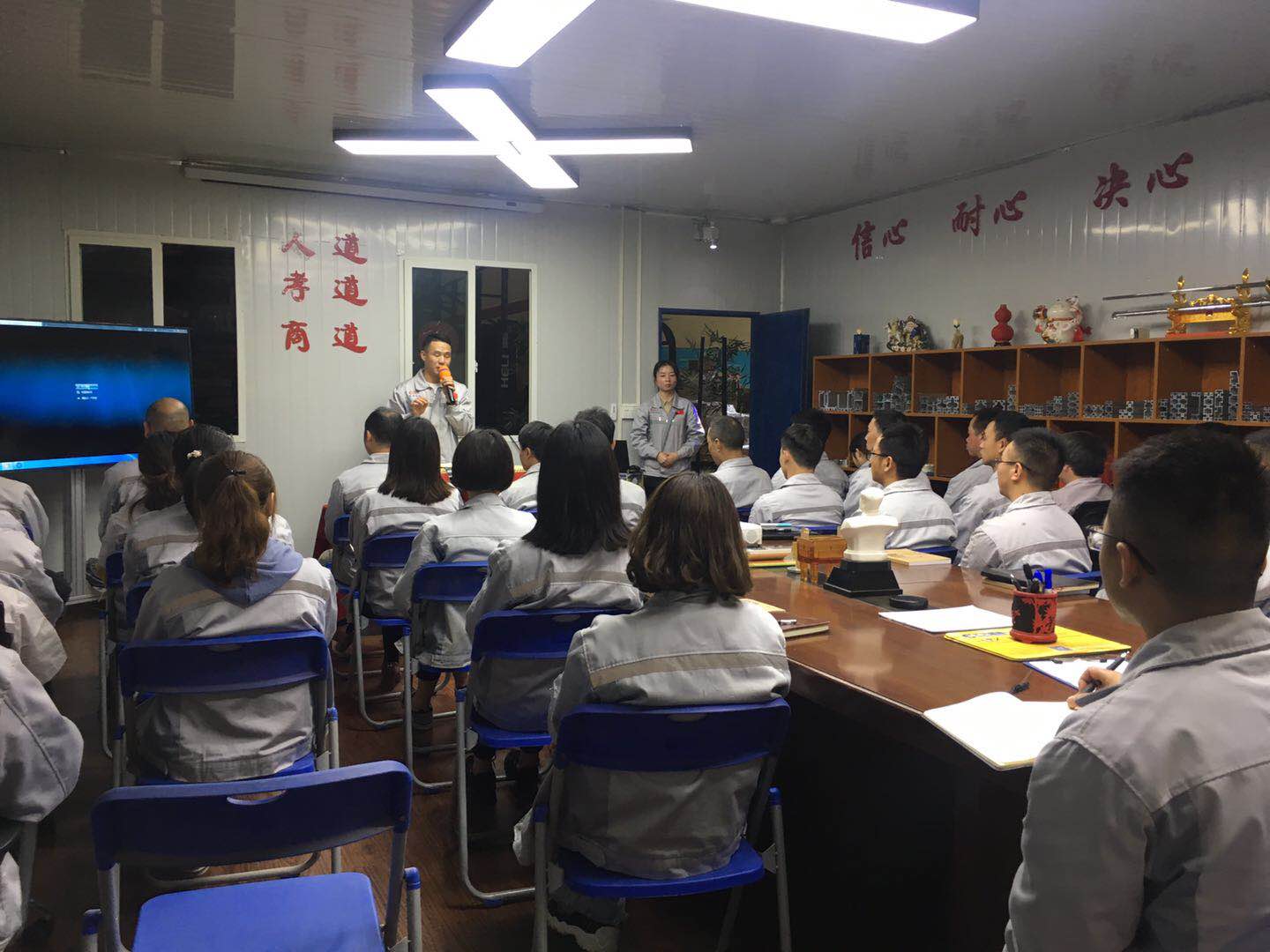 會議第三項議程,新員工入職儀式。由我們常務副總張總親自為我們新員工頒發(fā)紀念品。公司自成立以來,一直加大對新鮮血液的注入同時也非常注重人才的培養(yǎng)和團隊的建設,為每個人的發(fā)展都提供了寬廣的空間同時匯利興也是一個溫暖的大家庭,大家積極向上,互幫互助,團結友善。