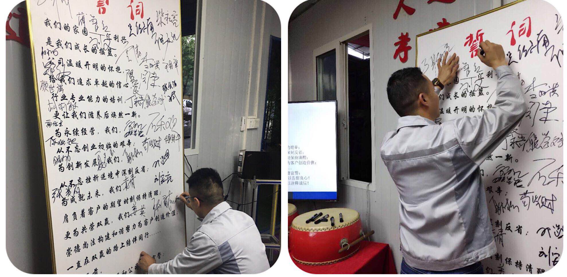 最后,全體匯興人起立宣讀企業(yè)誓言,“我們以個人尊嚴和公司聲譽宣誓,面對自己必踏踏實實做好每件事情,以告慰良心!面對客戶定兢兢業(yè)業(yè)做好每一次服務,以詮釋誠信”,然后肩并肩,一起唱響匯興之歌-相信我們會創(chuàng)造奇跡,整個大會就伴隨著大家激昂的誓詞聲及歌聲而落下帷幕。