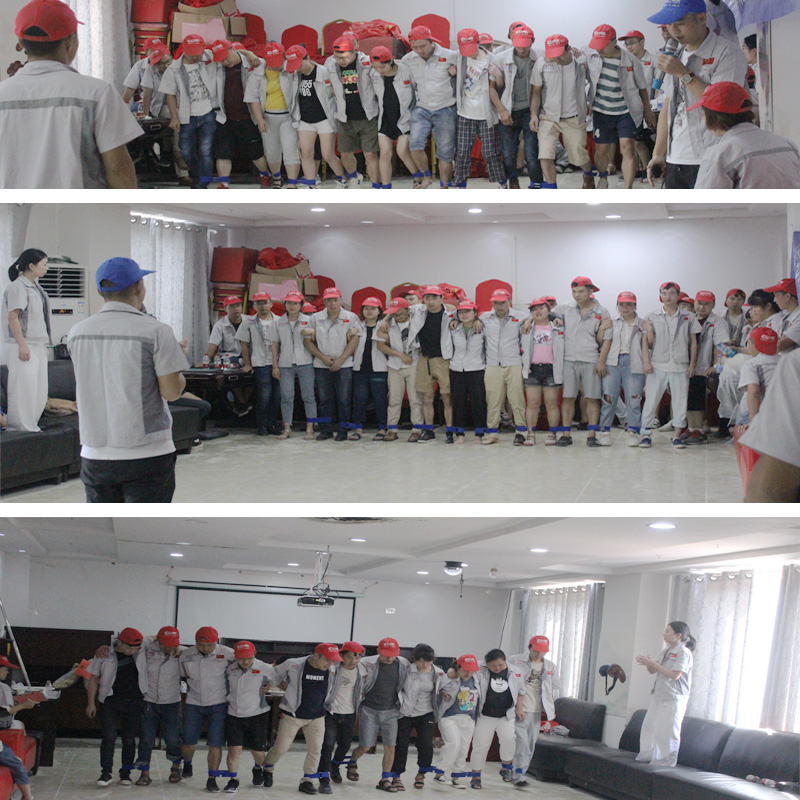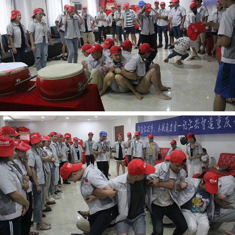 隨后在大家的強(qiáng)烈要求下,全體人員集體來一次“坐地而起”的游戲,挑戰(zhàn)自我、挑戰(zhàn)極限。大家肩靠肩、手挽手,同心協(xié)力一起發(fā)力,當(dāng)然這次并沒有像小組賽那樣順利,一會兒這邊人起來,一會兒另一邊的人沒有起來,這樣反復(fù)經(jīng)過一次又一次的嘗試,大家相互鼓勵(lì)、堅(jiān)持及努力,不斷的修正及解決存在的問題下,最終在第五次的嘗試下,集體以7秒的時(shí)間成功取得勝利,全員統(tǒng)一都站了起來。在那一刻全員的心都是沸騰的,不停的在為團(tuán)隊(duì)鼓掌為自己鼓掌,同時(shí)也讓大家明白了一個(gè)道理,無論遇到任何事,都要不斷地去改變、修正、堅(jiān)持、堅(jiān)持再堅(jiān)持,因?yàn)槌晒ν褪窃賵?jiān)持一下。