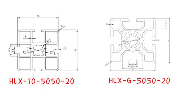 大家可以從上面兩個圖紙可以觀察出,兩款型材的不同之處,第一款為歐標50502.0,第二款為國標50502.0,其分別的重量為2.417KG/M 1.828KG/m,因此大家可根據(jù)小編給出的參數(shù)進而推斷國標5050-2.0的承重力度,應(yīng)該控制的范圍,不要超出本身型材的實際重量。