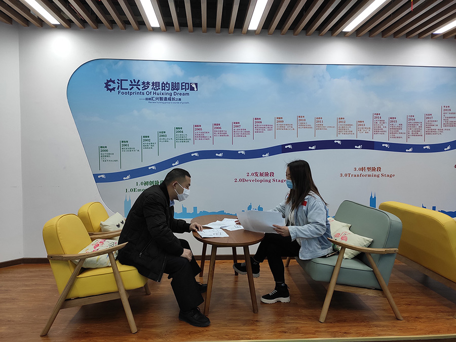 目前復(fù)工35人全部各就其位,與時(shí)間賽跑,爭(zhēng)分奪秒;來(lái)來(lái)回回穿梭在辦公場(chǎng)所內(nèi),與同事擦肩而過(guò),穿行的急迫感仿佛疫情早已遠(yuǎn)去,留下的是這份工作的熱情與激情。一個(gè)個(gè)平凡的身影,在面對(duì)疫情前,他們選擇了勇敢,選擇一路向前;在工作面前,他們選擇了擔(dān)當(dāng),用責(zé)任詮釋著平凡但不平庸的一天,用笑容渲染著每位認(rèn)真工作的匯興人。
