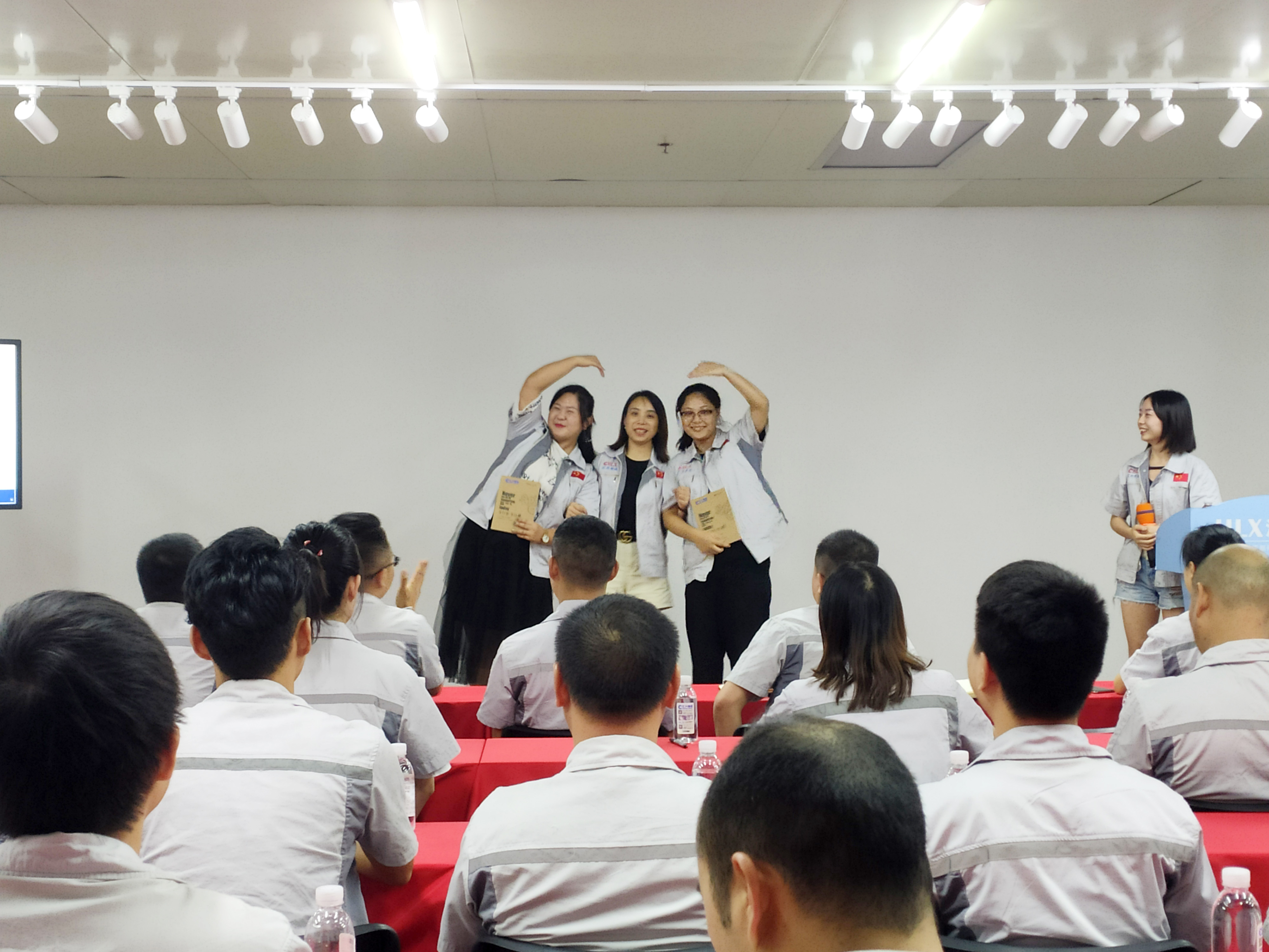 ? ? ? 其次,全體員工整肅衣冠,對(duì)倍加推崇的孝道、商道、人道鄭重鞠躬,莊嚴(yán)宣誓企業(yè)愿景:“成為全球領(lǐng)先的智能自動(dòng)化產(chǎn)業(yè)鏈集成服務(wù)商”,企業(yè)使命:做受尊敬的好人,造受尊敬的產(chǎn)品,辦受尊敬的企業(yè),建受尊敬的平臺(tái),企業(yè)精神“用情做人、用心做事”,團(tuán)隊(duì)精神“忠誠(chéng)團(tuán)結(jié)、勤奮進(jìn)取”,工匠精神:創(chuàng)于手、精于工、智于器、匠于心、品于行等。? 會(huì)議第一項(xiàng),新員工入職歡迎儀式。由客服部經(jīng)理石樂歡為新入員工頒發(fā)紀(jì)念品,希望她們?cè)诟髯缘膷徫簧戏e極向上,盡職盡責(zé),并為公司的發(fā)展貢獻(xiàn)一份力量。