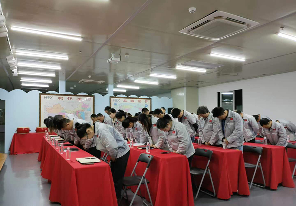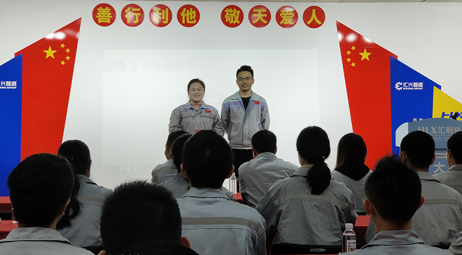2020年10月17日13點45分,匯利興西南工廠全體員工在匯利興學校召開9月月度會議,由事務(wù)中心主管陳香草主持。 隨后二位女精英擊響士氣鼓,鼓舞士氣,鼓舞著戰(zhàn)友們奮勇前進,并以這種以評促進、你追我趕的“激勵文化”,潛移默化融于員工的日常工作中,同時也鞭策著員工們不斷爭先創(chuàng)優(yōu),推動企業(yè)發(fā)展的內(nèi)生動力,從而形成“我來干、搶著干、努力干”的工作作風。現(xiàn)場鼓聲震天,士氣如虹。 會議第一項議程,企業(yè)文化展示。全體匯興人整肅衣冠對匯興人倍加推崇的“三道文化”(孝道、商道、人道)鄭重地鞠躬,莊嚴宣誓企業(yè)愿景:“成為行業(yè)優(yōu)秀的智能自動化產(chǎn)業(yè)鏈集成服務(wù)商”,企業(yè)使命:做受尊敬的好人,造受尊敬的產(chǎn)品,辦受尊敬的企業(yè),建受尊敬的平臺,企業(yè)精神“用情做人、用心做事”,團隊精神“忠誠團結(jié)、勤奮進取”,工匠精神:創(chuàng)于手、精于工、智于器、匠于心、品于行,行為準則:口中有德、目中有人、手中有技、心中有愛、行中有善,職業(yè)準則:對工作熱臉、對同事笑臉、對錯誤紅臉、對浪費黑臉、對榮譽爭臉。