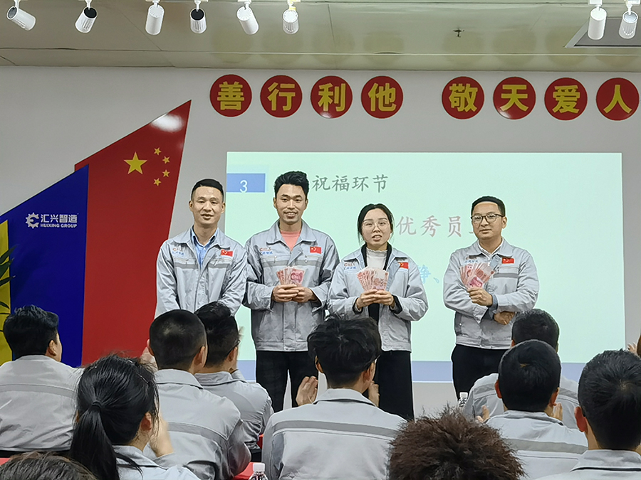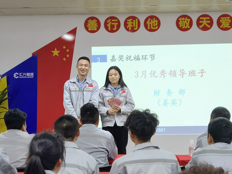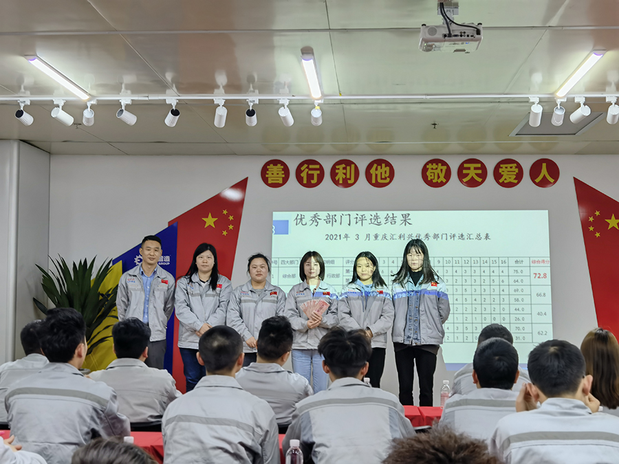 業(yè)精于勤,荒于嬉,行成于思,毀于隨??偨Y(jié)上個月工作情況,統(tǒng)籌下一個月工作計劃。匯利興西南工廠于4月9日18點40分,在匯利興學校召開三月月度會議。銷售主管劉文主持,匯利興西南工廠全體職員參會。會議開始,兩位高管敲響士氣鼓,敲響我們出征的號角,前進的戰(zhàn)鼓,鼓舞著每位員工沖鋒打勝仗的決心和毅力。全體員工向企業(yè)三道孝道、商道、人道鄭重鞠躬,宣讀企業(yè)文化,并對本月新入員工進行歡迎儀式。 春天是播種的季節(jié),同時也是催人奮進的季節(jié)。為了表彰在三月份表現(xiàn)突出的優(yōu)秀個人、優(yōu)秀主管、優(yōu)秀部門,充分發(fā)揮引領(lǐng)示范作用,最大限度調(diào)動和激發(fā)員工向優(yōu)秀人員看齊、不斷提高工作的積極性和創(chuàng)造性。本次榮獲優(yōu)秀員工(曾濤、邵靜、鄧筵暉)、優(yōu)秀主管(姜英)、優(yōu)秀部門(綜合部)。自成立以來,公司大力宣導我來干、努力干、拼命干的工作作風,積極鼓勵無私奉獻、恪盡職守的三好匯興人,并堅持打造一支有愛、有力量、有活力的團隊。