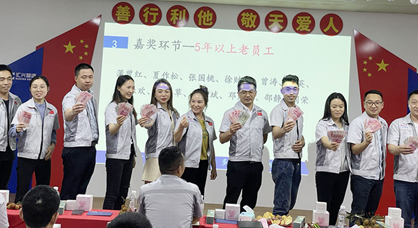 老員工代表夏佐松發(fā)表感言。夏經(jīng)理表示對(duì)于我而言,公司就是我的家,五年、十年這不是簡單的數(shù)字,是我對(duì)家的愛,是我藏于心中的一份情,同時(shí)十年也是匯利興一段光輝的歷程?;叵雱傔M(jìn)匯利興的面貌再到今天,公司發(fā)生了質(zhì)的飛躍,十年匯利興人共同的奮斗,十年不懈的探索與實(shí)踐,十年的積累與沉淀,更是離不開領(lǐng)導(dǎo)的決策和大家的努力,也正是因?yàn)橛羞@樣一群人在公司領(lǐng)導(dǎo)的帶領(lǐng)下,不斷助推著公司前行,突破!咱們的家才會(huì)越來越優(yōu)秀!在此,再次祝賀公司十周年生日快樂! 總部及各分子公司送祝福及慶祝十周年生日。隨著一曲歡快的生日音樂正式拉開十周年慶典儀式,董事長及各分子公司對(duì)重慶工廠的聲聲祝福,讓在場的每一個(gè)人都激動(dòng)萬分,處處洋溢著滿滿的熱情,處處見證了重慶十年的奮斗歷程!中層管理人員共同點(diǎn)燃十根蠟燭,象征著匯利興重慶工廠業(yè)績蒸蒸日上、鴻運(yùn)相伴永久,隨后全體匯利興人一起唱響生日歌,一起慶祝重慶十周年生日快樂!