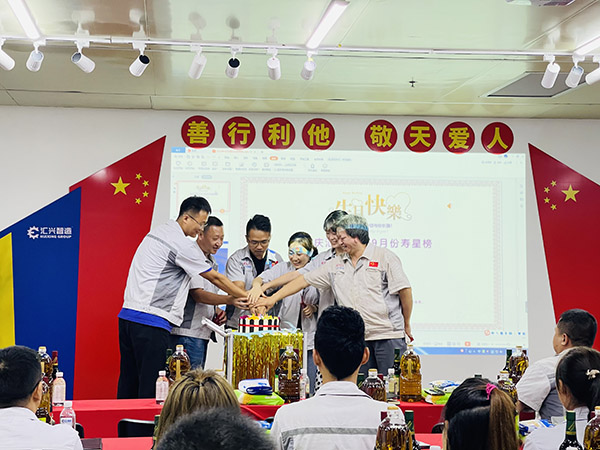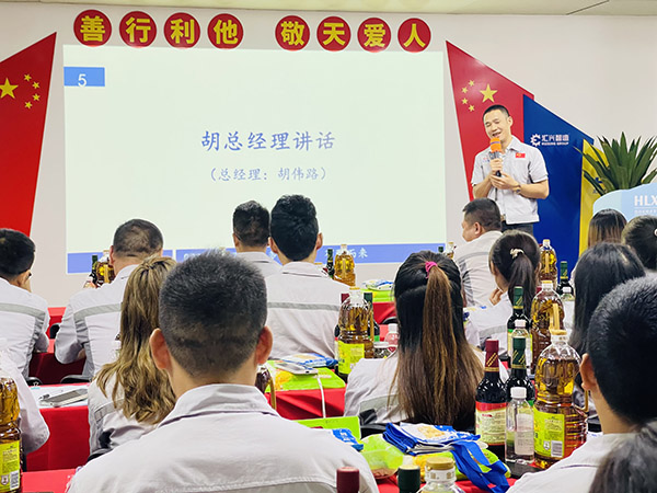 與時光握手,與歲月言和。成長不期而遇,用真切的祝福拉開壽星們的生日會,不僅讓壽星們的生日過得更有意義,也使每一位員工都能切身的感受到公司的溫暖和領(lǐng)導(dǎo)的用心,也讓每個人所經(jīng)歷的平凡歲月里,都可以連續(xù)發(fā)生不一樣的驚喜。再次祝福壽星們生日快樂! 會議第五項,胡偉路總經(jīng)理講話。首先胡總經(jīng)理感嘆時光飛逝,歲月如梭,驀然回首,已到初秋之際,2021年僅剩下僅有的100多天,在這攻堅的三月里,全體員工仍需拿出“紅軍不怕遠(yuǎn)征難 萬水千山只等閑”的民族氣概,朝著我們的目標(biāo)拿出我們的士氣卯足勁兒的向前沖;其二、胡總經(jīng)理向全體員工展示公司中秋禮品并解析禮品寓意(柴、米、油、鹽、醬、醋、茶),以生活中不可缺之的物品讓全體員工深刻感受到公司的關(guān)懷和關(guān)愛,并從側(cè)面宣導(dǎo)全體員工在工作崗位中,對待同事要有溫度,對待工作要有態(tài)度;花若盛開,蝴蝶自來,你若精彩,上天自會安排;其三、通過一則短視頻向全體員工宣導(dǎo)反哺之恩 、舐犢之情,進(jìn)一步勉勵全體員工要有一顆感恩的心,感恩身邊的人;其四、創(chuàng)立夢想基金,鼓勵員工加大產(chǎn)值賦能,為公司為個人謀福利;同時也進(jìn)一步勉勵全體員工,“寶劍鋒從磨礪出,梅花香自苦寒來”,只要我們一起努力,相信我們一定會實現(xiàn)我們的目標(biāo),讓我們一起擼起袖子加油干!