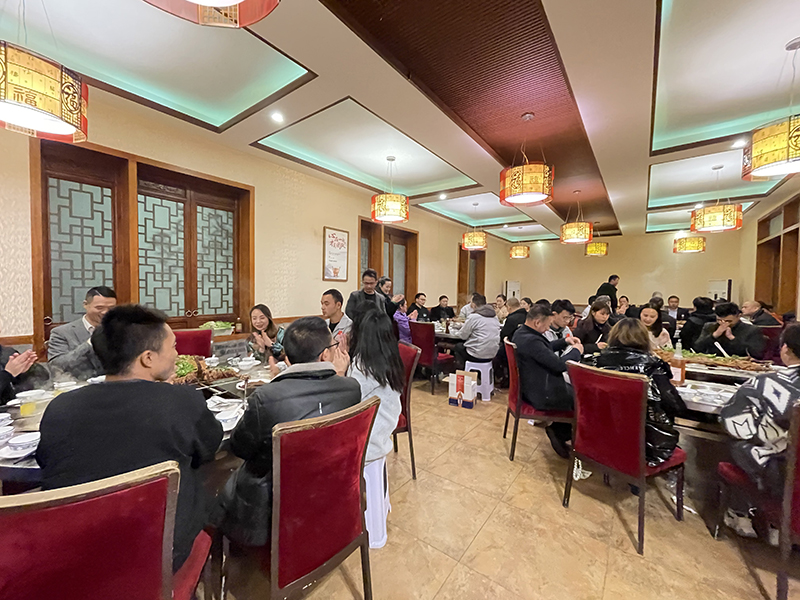 全體員工起立肩并肩,一起唱響“只要我們一起努力,相信我們一定會創(chuàng)造奇跡”,字里行間都激勵著在場每一位員工一定要奮勇前進,歌聲嘹亮,振奮人心! 伴隨時間的推移,也逐漸拉開了會議的下半場,冬天里的第一只羊。公司用最貼心的方式向每一位員工表達著自己的愛,讓大家在寒冷的冬天,不再畏懼寒冷,將暖暖的祝福,送到了大家的眼前,融化在火熱的烤羊里。香味四溢的正宗的草原風(fēng)味烤全羊,經(jīng)過專業(yè)師傅的精心烤制,油汁慢慢的從金黃的羊肉中沁出,羊肉也因為火的炙烤而變的金黃,香氣四溢,讓大家一同體驗了大口吃肉大口喝酒的豪放之情,讓大家感受到舌尖上的美食、味蕾的跳動,并訴說著從舌尖到心尖的蛻變,從走胃到走心的真情交流;大家圍坐在一起大快朵頤,席間談笑風(fēng)生,盡展妙趣,共同舉杯歡慶這美好時刻! 有一種浪漫叫并肩作戰(zhàn),有一種力量叫全力以赴,有一種果敢叫奮不顧身。無論前方等待著什么,我們?nèi)耘f拼搏向上,拿出我們最佳的狀態(tài),永遠堅定地向目標邁進,相信所有堅韌不拔的努力,都會得到勝利的回饋!加油!
