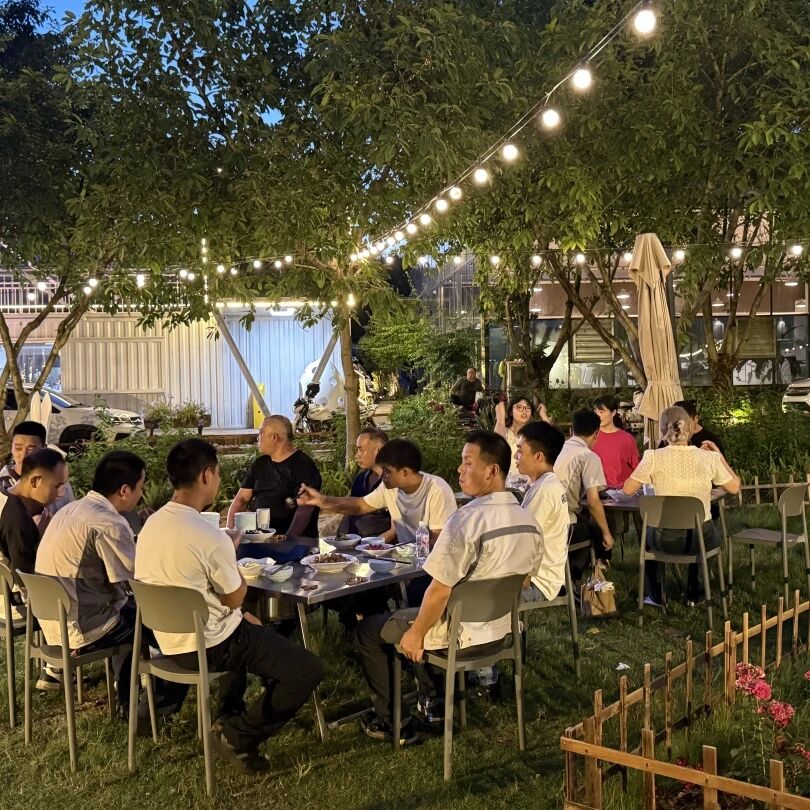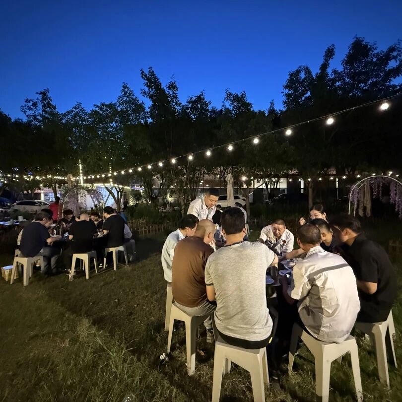 暮色初合時,戶外場地華燈初上,溫馨氛圍拉滿。席間流轉的笑語里,有項目攻堅后的如釋重負,更有朝夕相伴的默契升溫。管理者舉杯時的真摯祝辭,將 "感恩同行" 的情愫與 "聚力共進" 的期許融入杯盞醇香;壽星閉眼許愿的瞬間,全場輕唱的生日歌讓集體溫暖具象成觸手可及的幸福。燭光下交疊的歡笑剪影,餐盤間傳遞的貼心關懷,讓每個細節(jié)都在訴說:這里不僅是奮斗的職場,更是溫暖的家園。