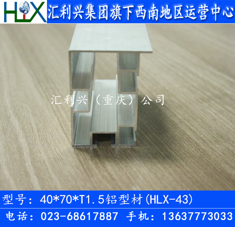 匯利興產品之皮帶線鋁型材系列,40*70*t1.5鋁型材(編號:HLX-43);又名帶護邊40*70鋁型材,每支6.02米長,壁厚1.5,米重1.428kg、槽寬8.3mm, 此款鋁型材常使用在簡易生產輸送線、無燈架流水線,配合在此款4070鋁型材常用配件有PVC輸送皮帶,機頭機尾動力滾筒、鍍鋅滾筒等一系列皮帶線常規(guī)材料。